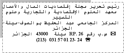 مجلة علمية محكمة دورية يصدرها معهد العلوم الاقتصادية، التجارية وعلوم التسيير